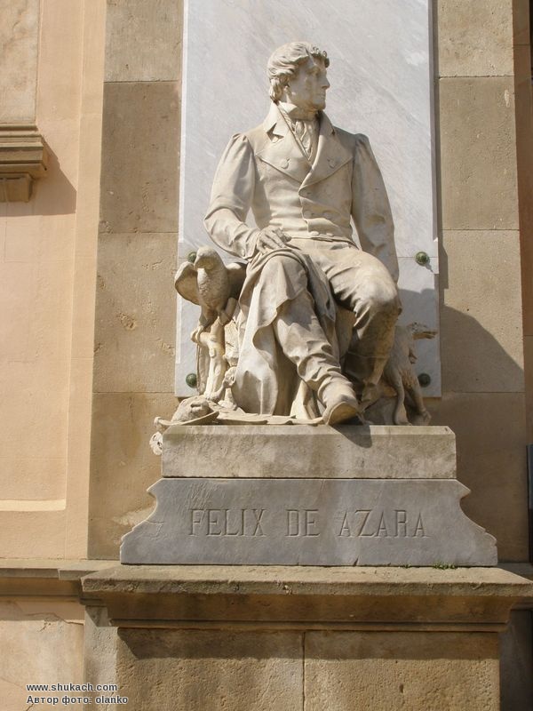 Встановлений у 1886 році ліворуч від входу у виставковий центр Мартореля. Мармурова скульптура зображує військового інженера, картографа та натураліста Фелікса де Азара (1746-1821), що сидить. Карта, яку він тримає в одній руці, символізує його роботу картографа, а тварина та птах з кожного боку вказують на роботу, яку він виконував як натураліста в Парагваї та Ріо-де-ла-Плата. Автор – скульптор Едуард Б. Аленторн.