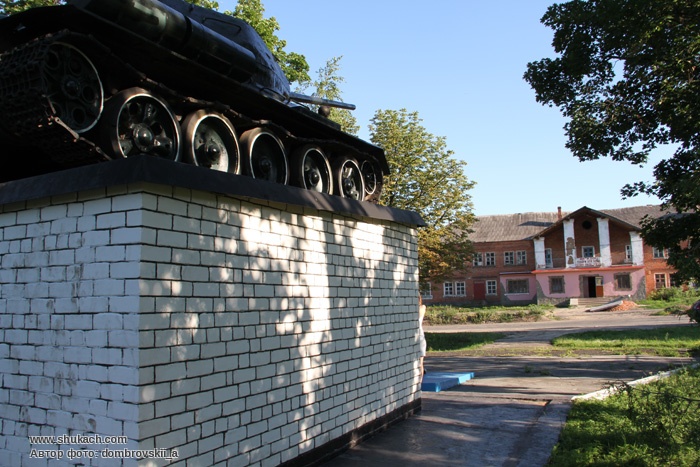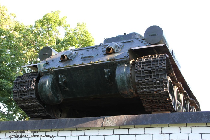Братская могила cоветских воинов и танк на постаменте в пгт. Белый Колодязь