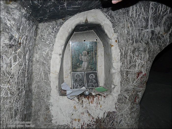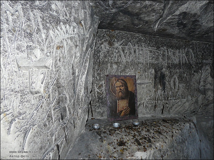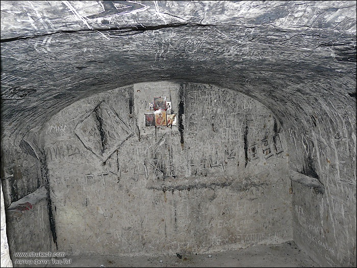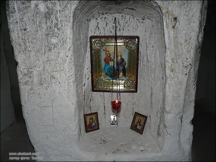 Дальше был один только ход, который вел в большую келью (сейчас там храм). Пол был весь усыпан кусками мела, идти надо было осторожно, чтобы не повредить ноги.