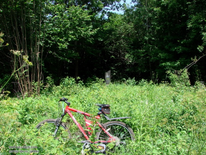 На первой фотографии вид с лесной дороги, памятник плохо виден из-за высокой травы.