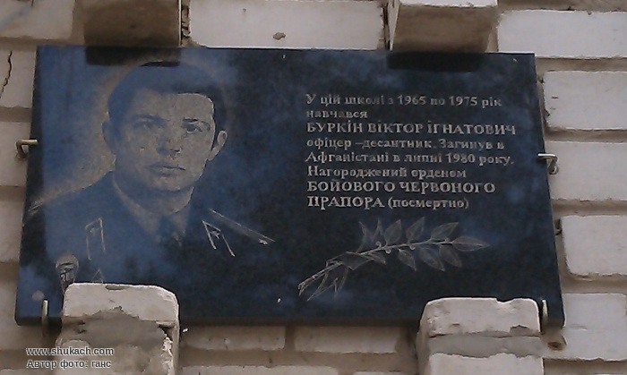 Мемориальная доска Буркина Виктора Игнатьевича на здании Гвардейской школы.