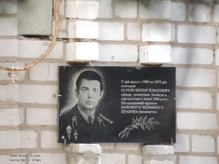 Мемориальная доска Буркина Виктора Игнатьевича на здании Гвардейской школы.