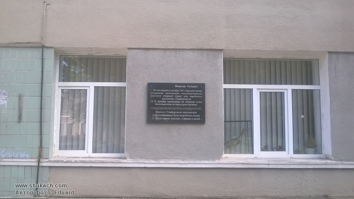 Памятная табличка на месте сборного пункта еврейского населения г.Симферополь в 1941г.
