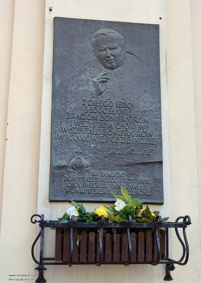 м. Краків. Меморіальна дошка Іоанну Павлу ІІ на будинку монастиря боніфратрів.