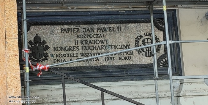 м. Варшава. Меморіальна дошка Іоанну Павлу ІІ на костелі Всіх святих.