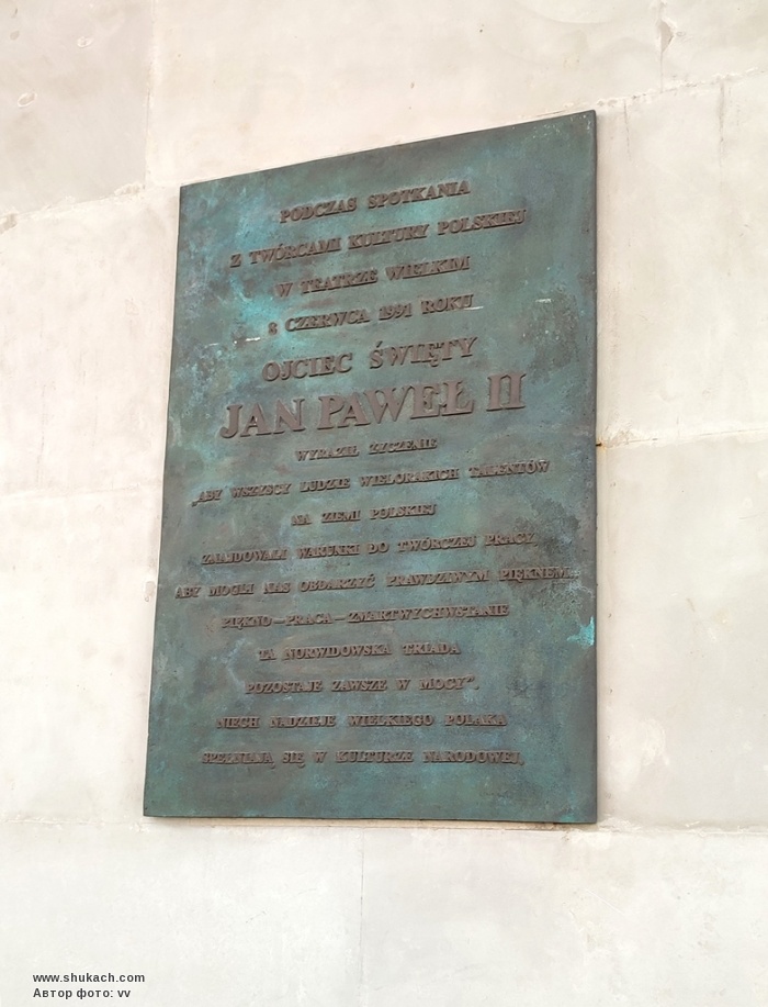 vv посетил(а) "м. Варшава. Меморіальна дошка Іоанну Павлу ІІ на будівлі Великого театру."