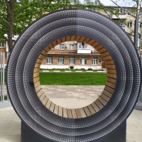 Арт-объект “Лавка примирения” находится на Аллеи влюблённых возле Свиридовского пруда в городе Узловая Узловского муниципального района Тульской области.