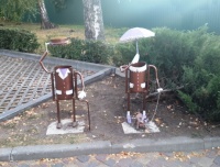 В г.Задонске на Каменной горе у пересечении улиц Коммуны и Крупской расположен необычный арт-объект в виде двух урн, изображающих кавалера и барышн