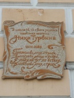 Мемориальная доска Турбиной Н.Г. на здании школы №12 в городе Ялта