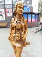 Деревянная скульптура "Девушка-фотограф" в Симферополе