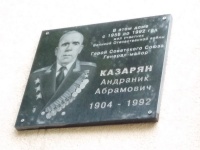 В Симферополе, на стене дома (ул. Гоголя, д. 71), где проживал Герой Советского Союза Казарян Андраник Абрамович, установлена мемориальная доска.