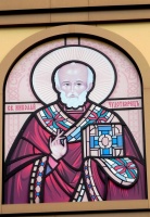 В Ленинском районе г.Донецка на фасаде здания Центра славянской, располженного по улице Куйбышева, 67, установлен витраж с иконой Святителя Николая