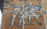 В г.Донецке на доме № 76 по проспекту Ильича расположено мозаичное панно советской тематики.