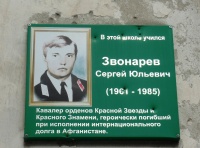 В г.Харцызске на здании школы № 24, расположенной по улице Октябрьской, 45, установлена памятная доска воину-интернационалисту С.Ю.Звонареву.