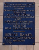На фасаде здания Харьковского РО ГУ Национальной полиции в г. Мерефа (ул. Днепропетровская, 211) установлена памятная доска погибшим милиционерам.