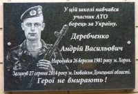 Мемориальная доска Деребченко А.В (участник АТО) в с. Вишняки