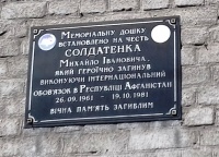На здании Мерефянской школы № 1 (ул. Савченко, 25) установлена памятная доска земляку-интернационалисту Солжатенко М.И.