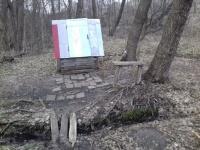Камень с мемориальной доской. Надпись гласит: Природный парк, заложен в 1982 году, в честь 1500-летия г.Киева.