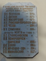 Памятная доска на доме № 13 на набережной имени Ленина в Ялте (нынешний отель "Таврида"), гласит, что в этом доме, бывшей гостинице "Россия" в различные годы проживали выдающиеся деятели науки и ку