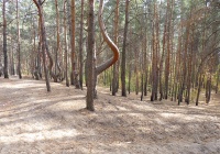 Шагаровский лес с высокими соснами, холмистая местность, озера.