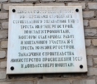 На одном из корпусов здания средней школы № 125 г. Харьков (бул. Фронтовиков, 1) установлена памятная доска о строительтсве нового здания школы.