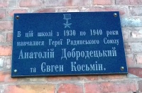 На фасаде здания харьковской средней школы № 67 (ул. Куриловская, 27) установлена памятная доска Добродецкому А. и Косьмину Е.