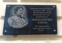 На здании Государственной научной библиотеки имени Короленко (пер. Короленко, 18) установлена памятная доска Хавкиной Л.Б.