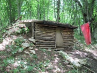 По дороге от турстоянки Ай-Димитрий на хребет Кордон-Баир (маршрут № 28) в овраге Биюк-Узень, возле слияния двух ручьев находится партизанская землянка.
