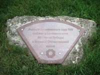 Недалеко от Дома Воронцова в Парке "Салгирка" на газоне установлен памятный знак основанию розария ботанического сада Таврийского национального университета.