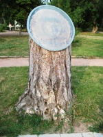 Перед парадным крыльцом Дома Воронцова в Парке "Салгирка" есть пень сосны, на котором