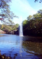 В г.Умани Черкасской области на территории Софиевского дендропарка посередине просторной зеркальной поверхности Нижнего пруда из широко разинутой пасти зм