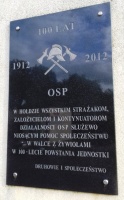 На здании добровольной пожарной части на ул. Марии Водзыньской (Marii Wodzyńskiej), 2 в с.