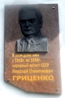 Памятная доска Н.О.Гриценко в г.Ясиноватой