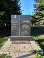 Аннотационная доска, посвящённая высаженной аллеи в честь погибших воинов-интернационалистов установлена на здании средней общеобразовательной школы №5 по улице Мира,