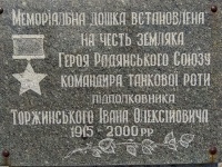 Мемориальная доска Герою Советского Союза, подполковнику Ивану Алексеевичу Торжинскому установлена на стеле перед входом в мемориальный комплекс посёлка городского ти