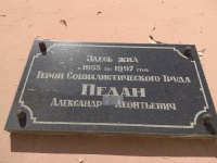 Мемориальная доска начальнику Амвросиевского цементного комбината, Герою Социалистического Труда Александру Леонтьевичу Педану установлена на доме по улице Ленина, 20 в городе А
