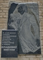Мемориальная доска композитору В.Г.Мигуле на здании школы № 43 в г.Волгограде