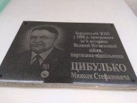 Аннотационная доска, посвящённая присвоению школе имени партизана-подпольщика Николая Стефановича Цибулько, установлена на здании общеобразовательной школы I-III степени в селе