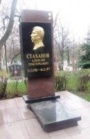 В г.Торезе на Центральном городском кладбище новатора угольной промышленности расположена могила А.Г.Стаханова.