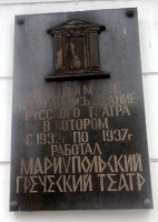 Памятная доска в честь греческого театра в г.Мариуполе