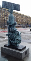 Напротив каждого входа в боковые крылья Дворца культуры и науки, симметрично вокруг здания расположены четыре о