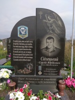 Могила младшего сержанта ВСУ Сергея Юрьевича Сидлецкого, погибшего в АТО на востоке Украины находится на Дмитровском кладбище в посёлке городского типа Гришков