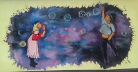 Настенное художественное панно (мурал) на стене торгового павильона на пр-те Гагарина, 26 появилось в октябре 2018 г. Оно называется "Космос.