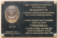 Мемориальная доска историку Стефану Бендасу в г. Берегово