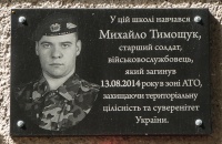 Мемориальная доска военнослужащему Михаилу Тимощуку в г. Берегово