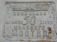 Аннотационная доска, посвящённая строительству здания к 50-летию Великой Октябрьской социалистической революции, установлена на здании по улице Пушкина, 67 в селе Благодатное Ив