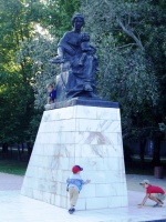 В сквере на пересечении Симферопольского шоссе с улицами Крымская и Володарского, на центральной аллее расположена скульптура женщины с ребенком на колене.
