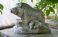 Скульптура, похоже дикой свиньи с поросятами, установленна на территории Полтавской государственной аграрной академии.