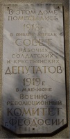 На фасаде здания гостиницы "Астория" (пр-т. Айвазовского, 9-А) установена памтяная доска органам Советской власти.