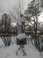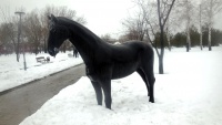 В Петровском районе г.Донецка при входе в парк имени Г.И.Петровского расположены скульптуры коней вороной и белой масти.